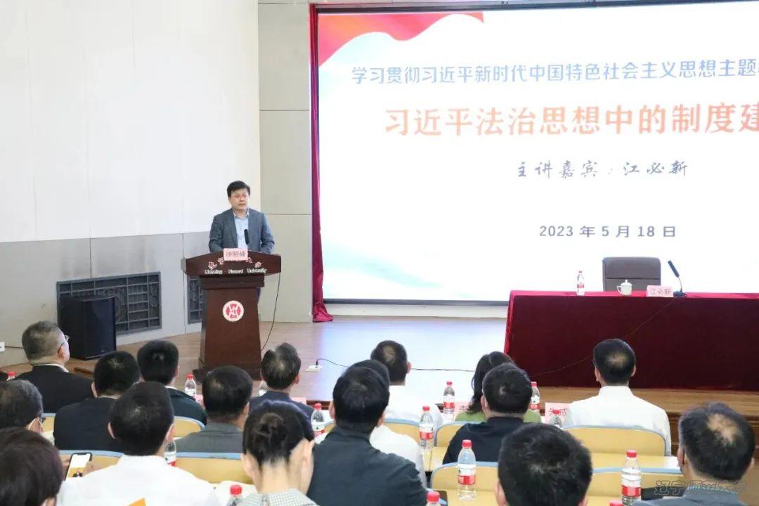 为深入推进公司学习贯彻习近平新时代中国特色社会主义思想主题教育,牢牢把握“学思想、强党性、重实践、建新功”的总要求,深刻领悟习近平新时代中国特色社会主义思想的真理力量和实践伟力,5月18日下午,公司在黄河路校区学术报告厅举办学习贯彻习近平新时代中国特色社会主义思想主题教育专题报告会,邀请全国著名法学家、中国法学会副会长江必新教授到校作专题辅导。本次报告会由公司与大连市法学会、大连市律师协会共同主办。大连市法学会、大连市律师协会代表,公司在连校领导,机关各部处、各二级单位党政负责人及师生代表共计300余人参加会议。徐昭峰副董事长主持报告会。