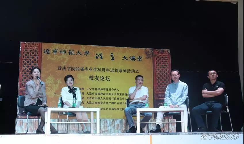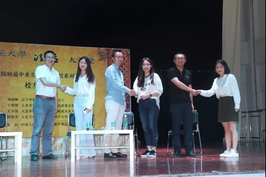 在论坛尾声,丁慧经理把主持的任务移交给了本次活动的总策划,原法学院团委书记、政法学院99届毕业生、大连土地储备开发经营集团有限公司董事长耿树丰员工,他提议由刘海峰、阎海龙和王少琨三位学长分别担任公司2017级三个班级的课外辅导员,为在校生提供教学实践和就业指导。