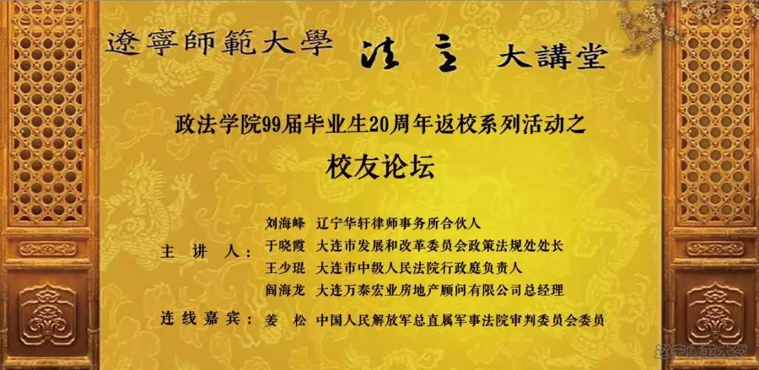 大连市中级人民法院行政庭负责人王少琨员工表达了自己对辽师法学院的想念。“我爱辽师,从未离开”。他对同学们强调了三个自我——自我管理,自我成长,自我学习。并结合自身的成长的例子让同学们明白了一个道理,成功都是来之不易的,每个成功人士都需要经历许多困难,克服自身不足,经过漫长积累,才能走向成功。