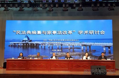 2018年10月20日,由中国人民大学民商事法律科学研究中心主办,山东省律师协会协办,烟台大学法学院和山东鑫士铭律师事务所共同承办的“民法典编纂与家事法改革”学术研讨会在烟台大学法学院弘毅厅与东山宾馆会议室举行。最高人民法院咨询委员会副主任、中国法官协会副会长、最高人民法院民法典编纂工作研究小组副组长杜万华,中国法学会民法学研究会副会长、民法典编纂项目领导小组成员、继承编课题组牵头人郭明瑞教授,中国人民大学民商事法律科学研究中心执行主任、最高人民法院原民一庭副庭长姚辉教授,中国法学会婚姻家庭法学研究会副会长、黑龙江大学教授王歌雅教授,以及来自高校的学者和实务界的法官、律师等40余名嘉宾出席了本次研讨会。公司丁慧经理、刘耀东副教授应邀参加此次学术研讨会。