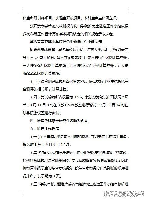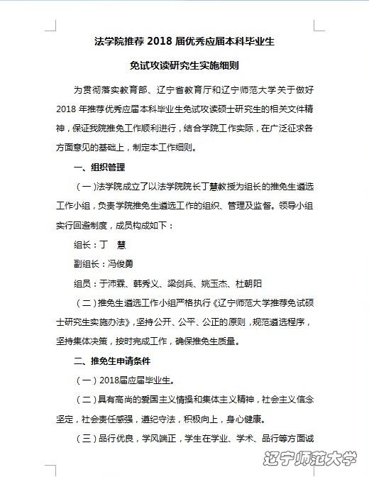 法学院推荐2018届优秀应届本科毕业生免试攻读研究生实施细则