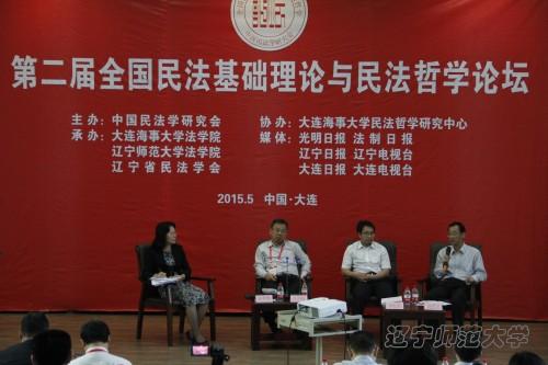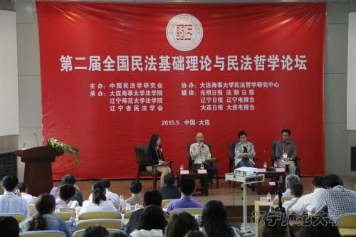 在公司举行的第二场主题论坛,由法学院经理丁慧教授主持。来自北京大学、中国人民大学、华东政法大学、西南政法大学、吉林大学、中国社科院法学所、厦门大学、大连海事大学、辽宁大学等全国著名高校和科研单位的专家学者四十余人作为嘉宾出席了本届论坛。本届论坛得到了光明日报、法制日报、辽宁日报、辽宁电视台、大连日报和大连电视台等多家新闻媒体的支持。