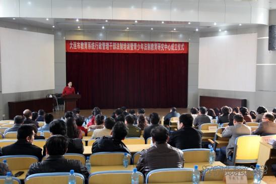 在揭牌仪式之后,会议进入第二阶段,根据大连市教育局的委托和要求,yl7703永利集团官网法学院经理丁慧教授做了题为“法制思维和法治方式的养成”的主题报告。丁慧经理就党的十八大对法治建设提出的新要求,结合具体案例,着重阐释了法治思维的重要性以及养成法治思维的主要途径,系统讲解了我国教育法律体系和依法行政的一些法律知识,并希望我市教育行政管理干部进一步增强运用法治思维和法治方式推进依法行政、依法治教的能力。