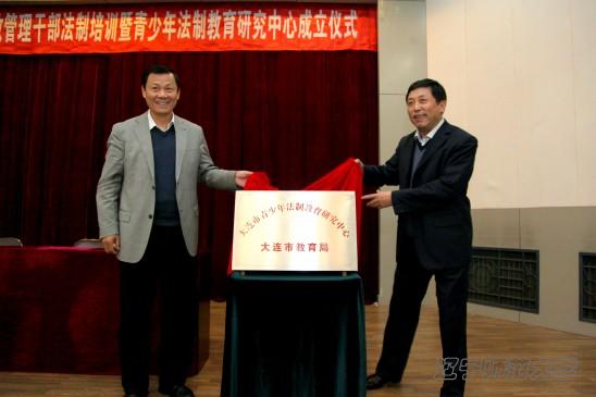会议第一阶段伊始,大连市教育局副巡视员吕伟明宣读了《关于同意成立大连市青少年法制教育研究中心的批复》。大连市教育局副局长张鹏越和yl7703永利集团官网副董事长李庆伟教授共同为“大连市青少年法制教育研究中心”成立揭牌。
