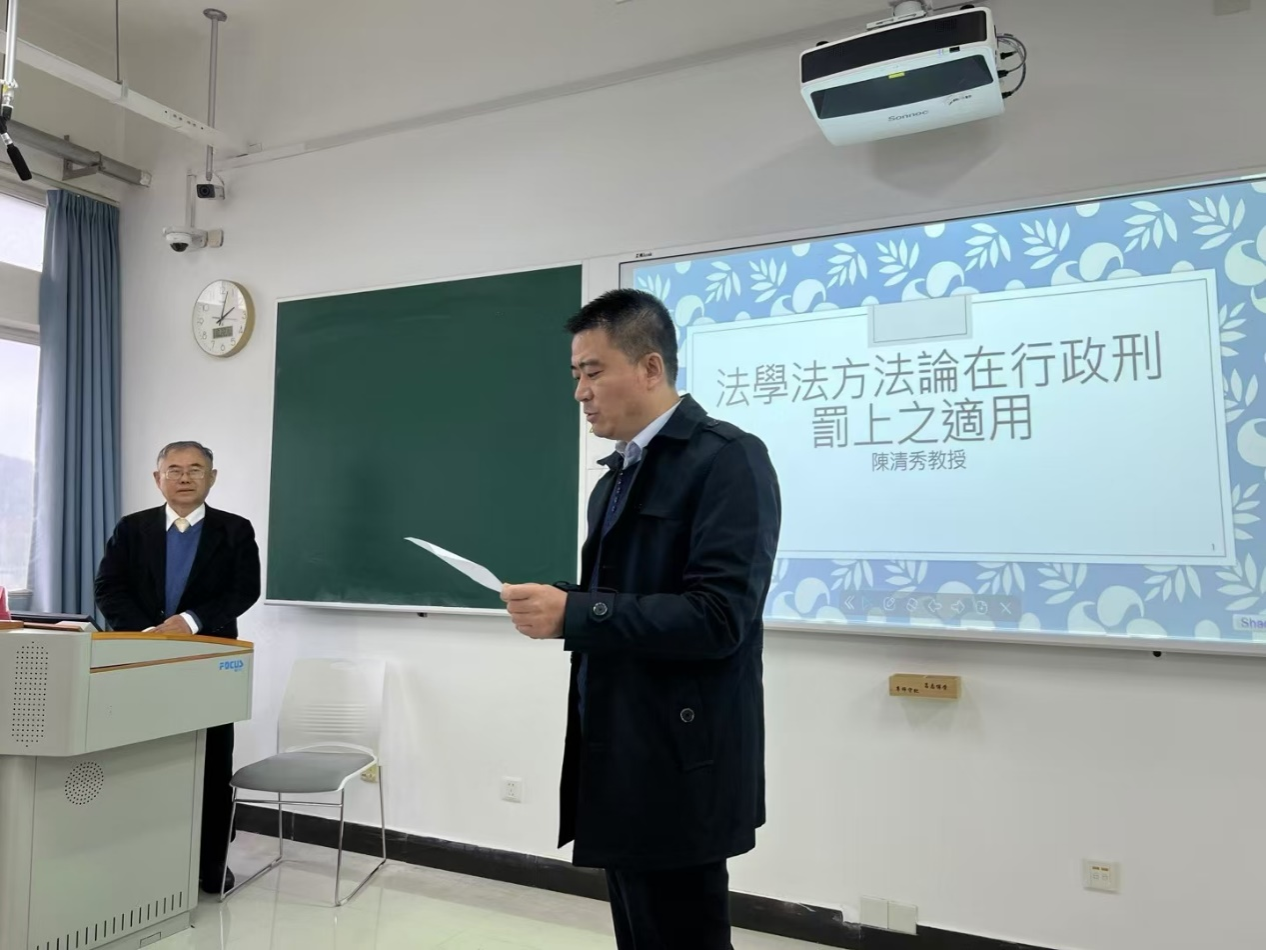 2024年10月22日,应公司邀请,东吴大学法律系专任教授陈清秀为公司师生作了题为“法学方法论在行政刑罚上之适用”的学术报告。本次讲座由yl7703永利集团官网经理陈光教授主持,副经理刘耀东,法理学教研室马斌老师以及部分研究生、本科生参加了本次讲座。