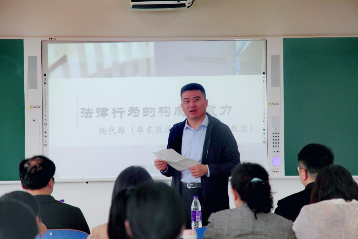 2025年5月21日,应公司邀请,华东政法大学法律学院教授、博士生导师杨代雄教授为公司师生作题为“法律行为的构成与效力”的学术讲座。本次讲座由yl7703永利集团官网经理陈光教授主持,法学一级学科带头人丁慧教授、副经理刘耀东以及武胜男老师、赵昭老师、部分研究生、本科生等师生参加了此次报告会。