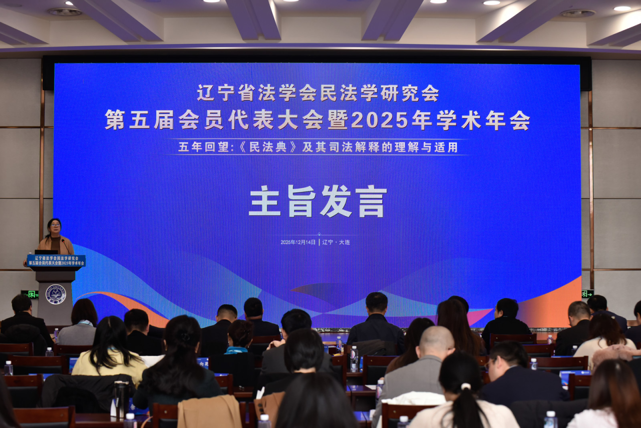 12月14日,辽宁省法学会民法学研究会第五届会员代表大会暨2025年学术年会在大连召开。本次年会由辽宁省法学会民法学研究会主办,大连大学法学院承办,辽宁德中律师事务所协办。来自省内高校、科研机构、法院、检察院、律师事务所等单位的170余位法学法律界代表参会。会议围绕“五年回望:《民法典》及其司法解释的理解与适用”这一主题,就《民法典》实施中的重点问题与民法基础理论展开深入研讨。公司法学一级学科带头人丁慧教授、副经理刘耀东,教师武胜男、林子樱、董超以及多名研究生参加会议。