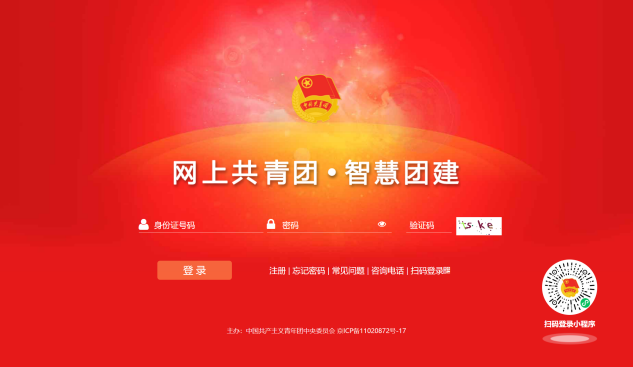 登录初始密码:身份证号码后八位;若修改过密码,请使用修改后的密码登录;若密码遗忘,请联系原团组织负责人进行解决,由所在团支部管理员在“成员列表”处分配“密码重置验证码”,在登录页面点击“忘记密码”,再输入身份证号、新密码、密码重置验证码、验证码即可重置密码。