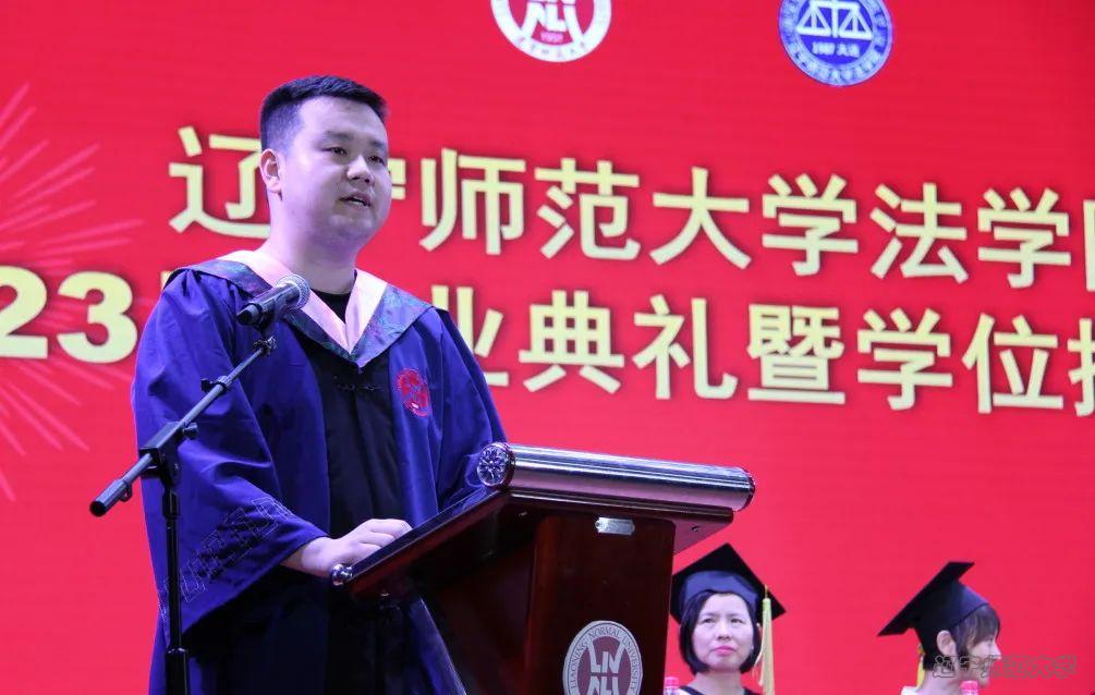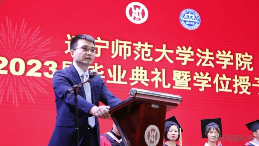 仪式第八项:教师代表讲话。公司青年教师代表 马斌老师上台讲话,马老师从法学人的自身特色和优势出发,结合时代背景,表达了对广大毕业生的期许与祝福,鼓励大家在未来的学习和工作中兢兢业业、力争上游。