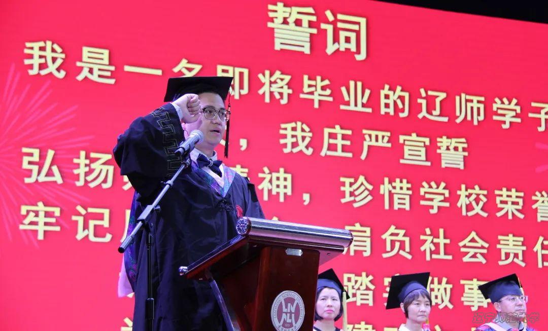 仪式第四项:毕业生宣誓。2023届本科毕业生 汪子杰同学带领全体毕业生庄严宣誓。